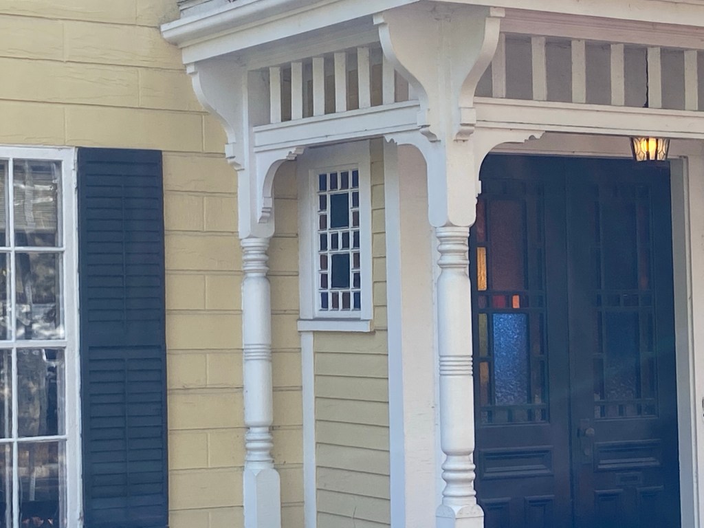 Built in 1830, this house and its farm house (c. 1805) were moved to their current location in Arlington, Mass. Around 1850, some more Italianate details were added to the home.