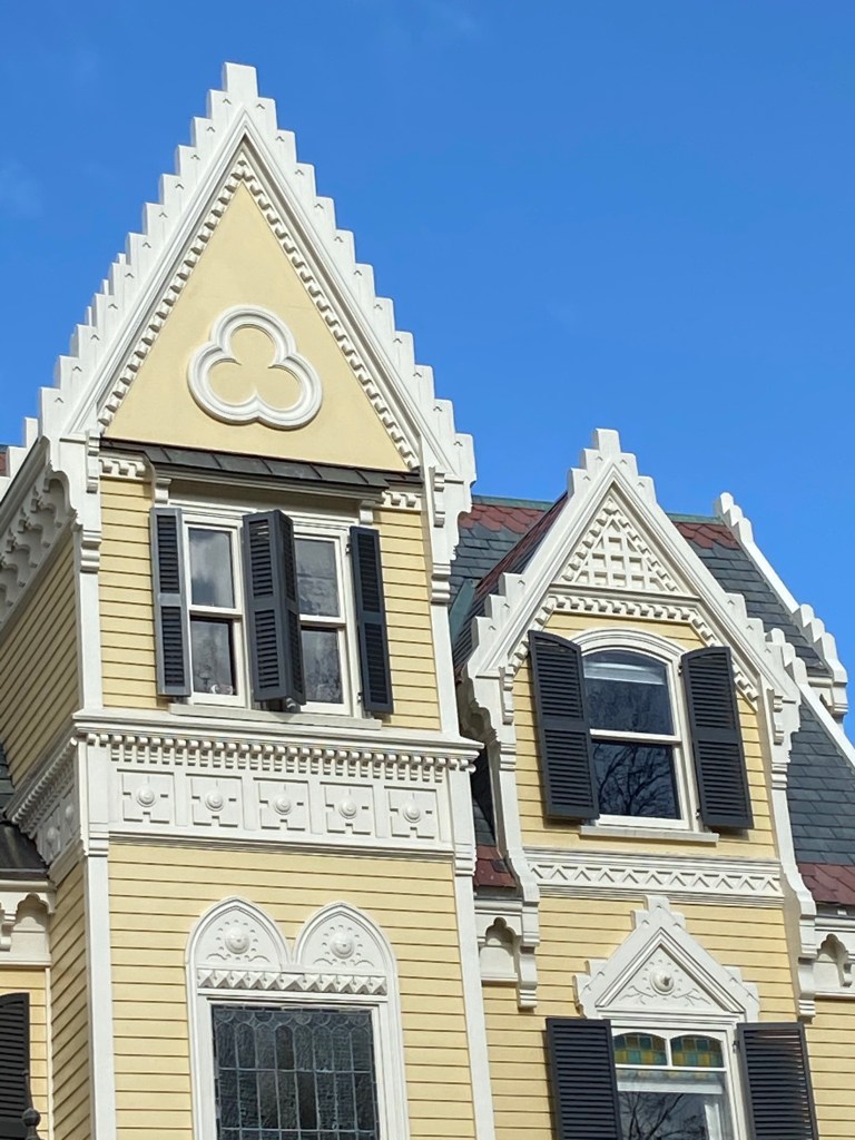 Built in 1879, the Charles Haskell House in Newton, Mass., is one of our favorite places we’ve visited thus far on our walks. In fact, we haven’t really seen anything like it in person before.