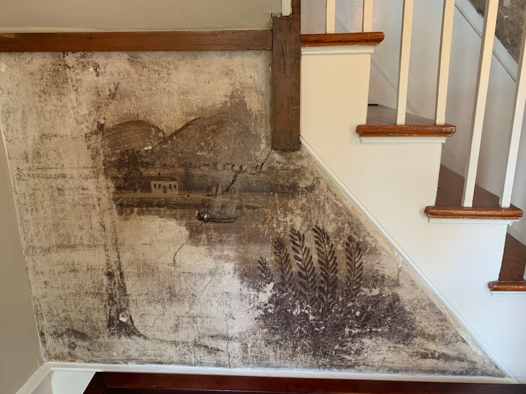 One of our favorite things about this house, besides the family that lives there, are remnants of the Rufus Porter murals that still adorn the staircase walls. (Porter was an American painter, inventor and the founder of Scientific American magazine, which is still in print today.)