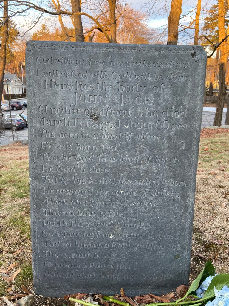 So, my mom couldn’t stop thinking about John Jack, a slave we wrote about a few days ago after learning of him at a house in Concord, Mass.