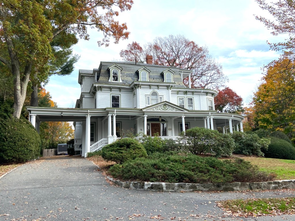 “Extensive remodeling as architectural fashion changed was a common practice in Newton during the Victorian era,” says a Massachusetts Cultural Reference Information System entry about the home. “Few examples, however, are as successful as the Priest house, where well-preserved architectural details from the Mansard and Colonial Revival styles blend to create an imposing composition.”