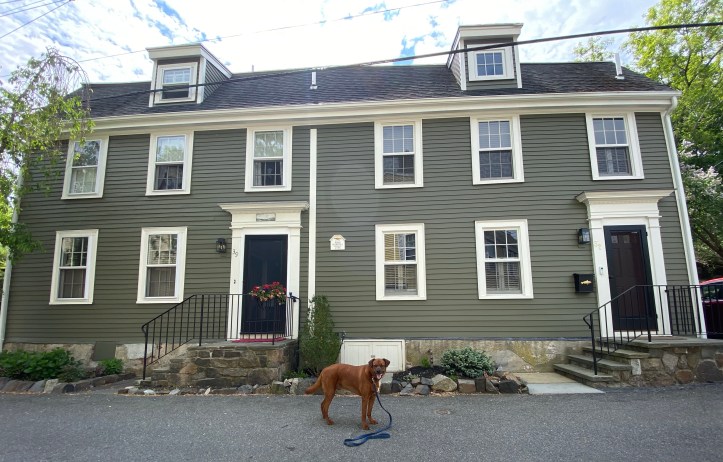 “It is a 2-story center entrance house with another bay containing a stairhall to the right,” reads its entry in the MACRIS database. “The right side with staircase seems earlier and has finished beams with the post 1720-type mortise and tenon joint. The original first floor fireplace was much larger than it is at present. The existing fireplace and paneled wall may date from about 1750.