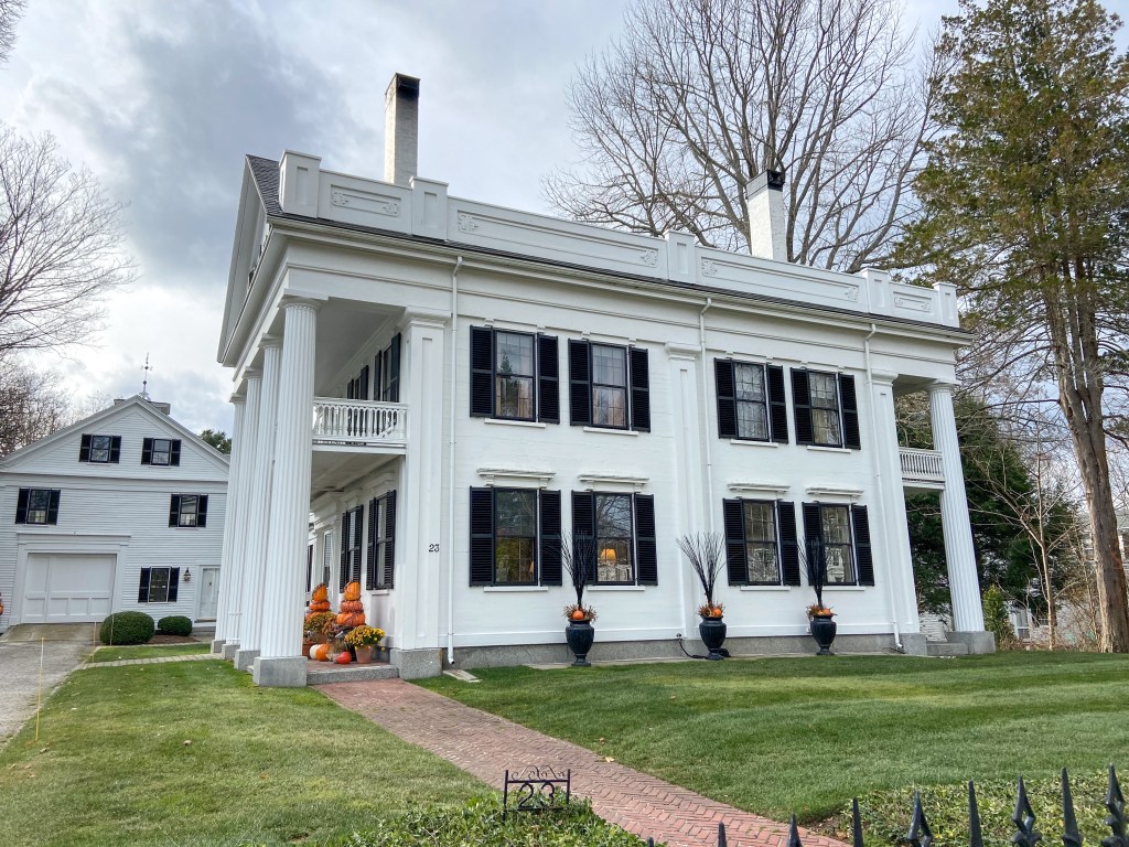 It was styled to resemble a temple, and it features a Doric-style portico on each side. The western section of the property was sold to Nathaniel’s brother Charles Thompson, who was also a sea captain. Charles also built a Greek Revival house, but it was more modest compared to Nathaniel’s.
