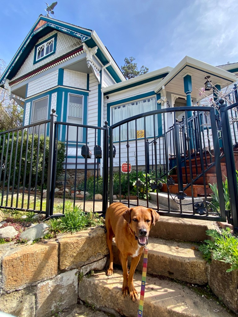 You bet I got a yummy meat treat after precariously balancing on this step in Placerville, California for my photo. š