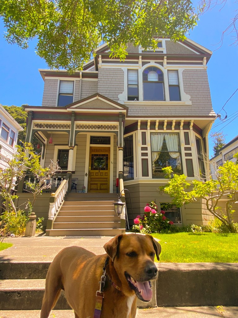 How much is that doggy in the window? Seriously, the ultimate cuteness happened while we were photographing this house in Alameda, California. The furry black and white resident of this beautiful Queen Anne was quietly observing us from its second story perch.
